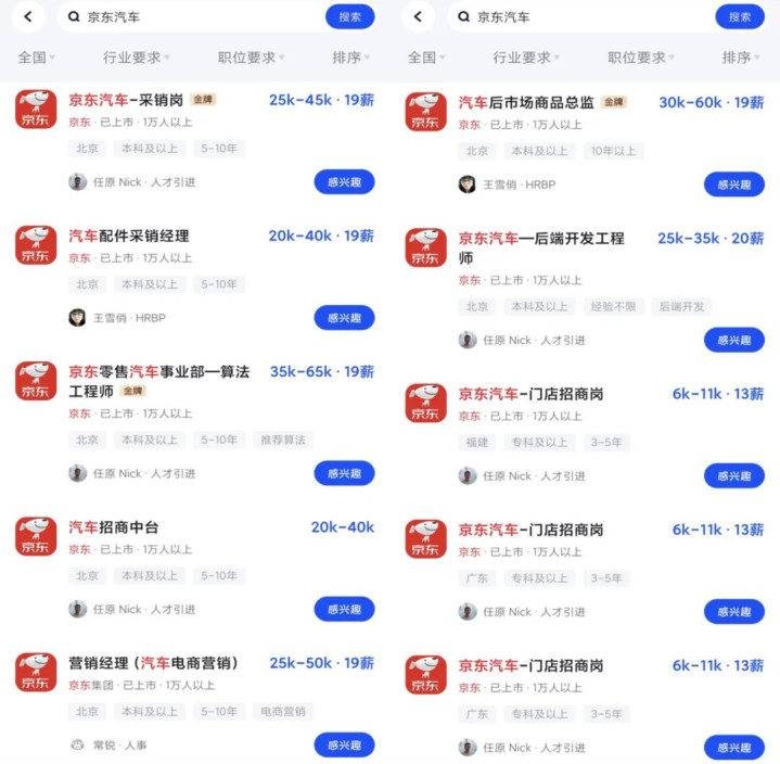 在新车信息密集曝光的同时,时代财经注意到,京东汽车近期在人才招募上也有大动作。